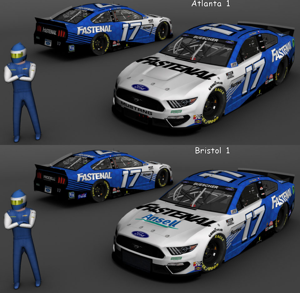 2021 #17 Chris Buescher Mustang from Atlanta 1 and Bristol 1. MENCS 2019 mod & template - Lefty template update...... #'s - BER...... B-pillar decals - Rick's 2021 B-Pillars and me...... Sponsor logos from various internet sites...... Pit crew - SteveZ ( modified )...... Renders - The Mod Squad......