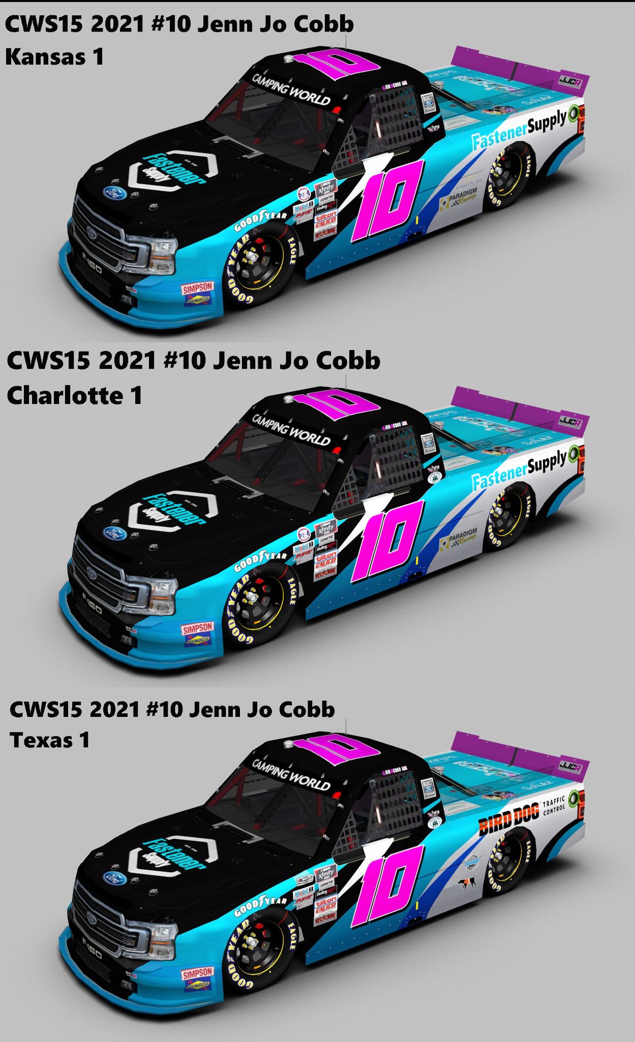 CWS15 2021 #10 Jenn Jo Cobb Kan1, Char1 & Tex1 Ford
