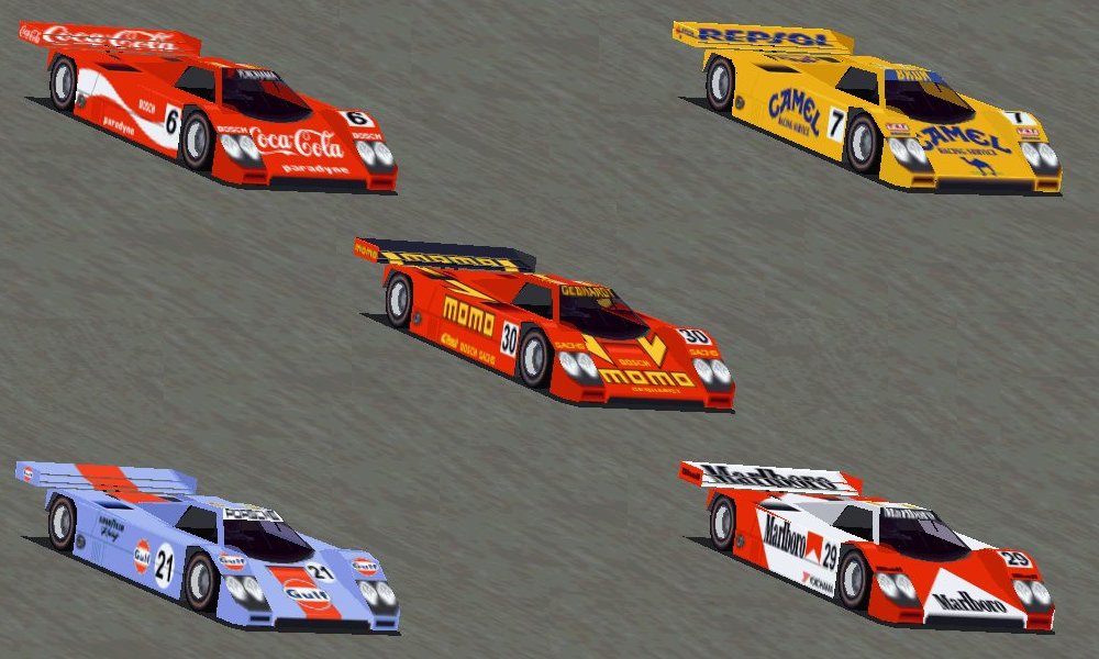 Here are five paint schemes for the N3GTP Patch. Link to find the patch is in the Readme.txt file. Paint jobs by me - Porsche 962 parts by Marc Nelson and Bob Roberson - Logos from various websites.