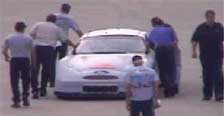 The people who didn't test during the first testing session have taken to the track again today. The main straight camera is still off but you can still look around the garage. Here you can see what I saw this morning when they were unloading Kenny Schrader's car from teh transporter. The testing will run through Wednesday, so be sure to drop by their site and have a quick look around.